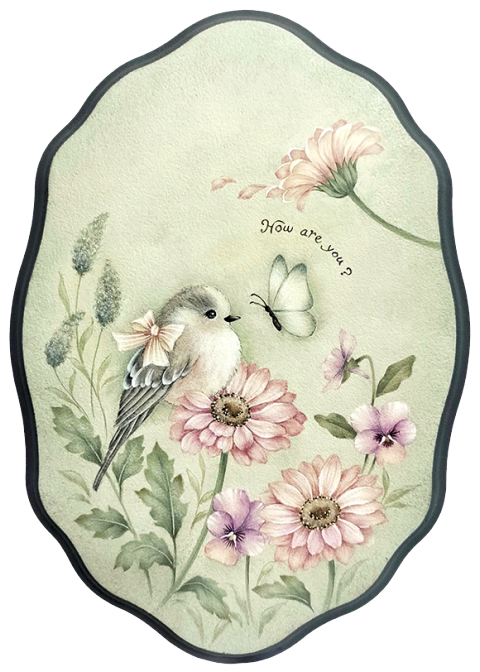私はふっくらとした小鳥と少し色鮮やかなお花を描きました。