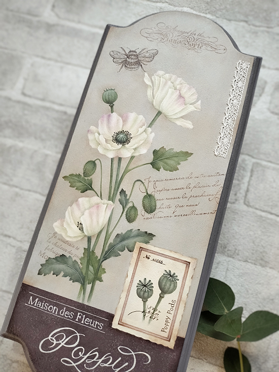 今回はポピーをメインに標本のようなコラージュ要素を入れて仕上げました。